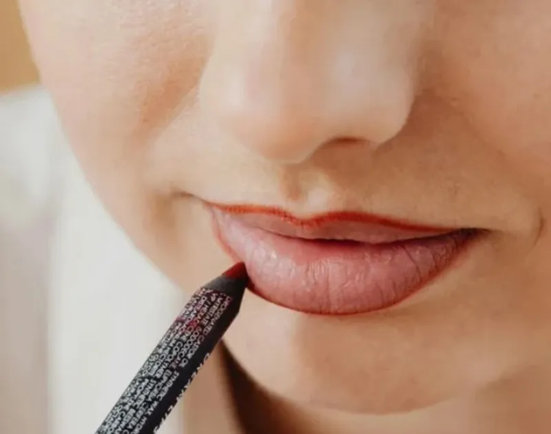 ۳. خط لب کشیدن دور لبها